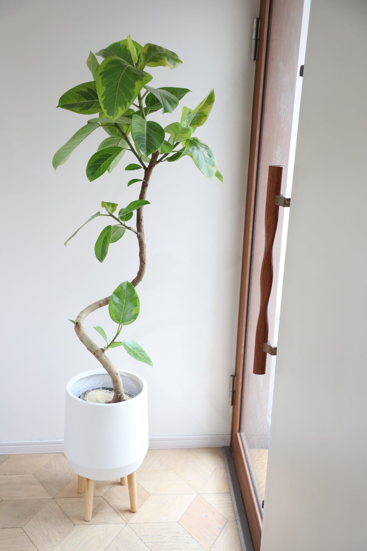 肉厚で頑丈な葉が特徴のゴムの木の仲間。楕円形の鮮やかなグリーンリーフに魅了されます。また美しい曲げ木仕立てでインテリア性も抜群です。
