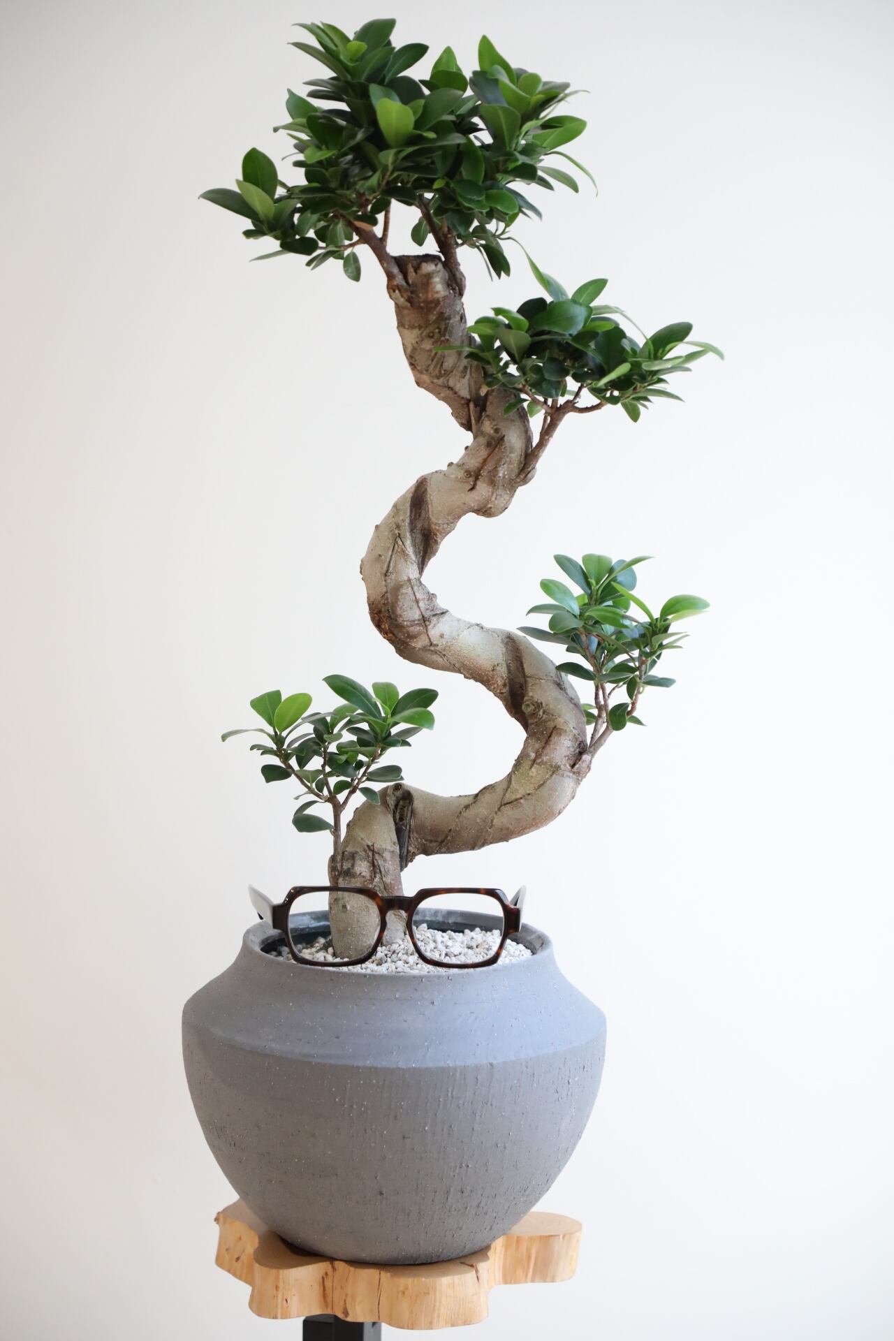 【M】ガジュマル 曲げ木/Ficus microcarpa ※陶器鉢付き