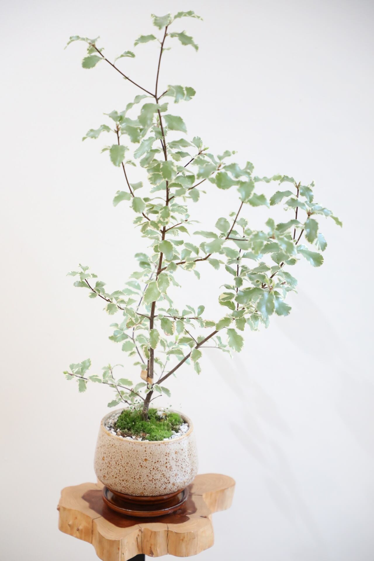 しなやかな黒い枝と爽やかな斑入りの葉のコントラストが美しいです。和と洋の両方の要素をもった繊細な樹形に魅了されます。