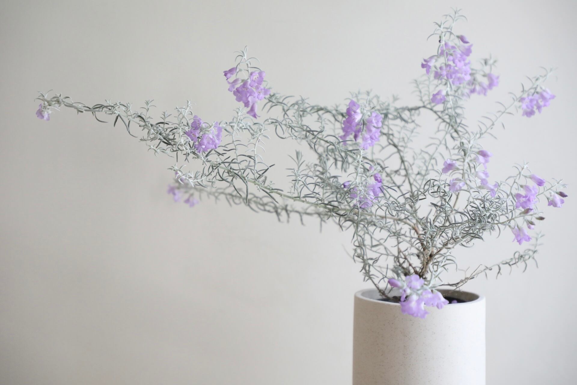 美しいパープルの花と白い短毛の枝が美しいです。3月~5月頃に開花し、6月頃までお花をお楽しみいただけます。お花が全て枯れた後は、初夏までに伸びた枝を軽く整えておくと、また来年お花をお楽しみいただけます。花がない状態でもシルエットが美しいですよ。