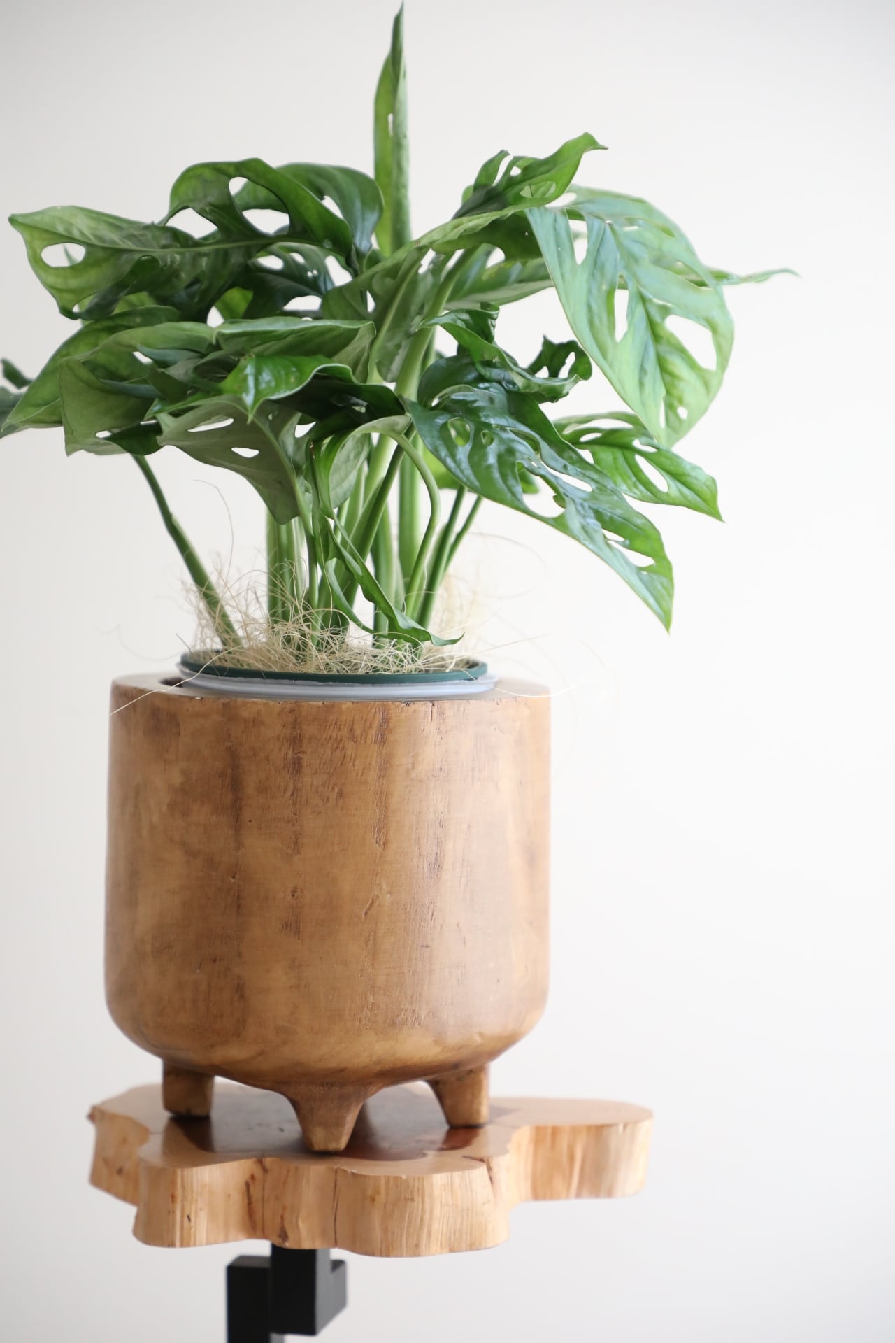 【M】マドカズラ/Monstera Adansonii ※ウッド鉢カバー付き