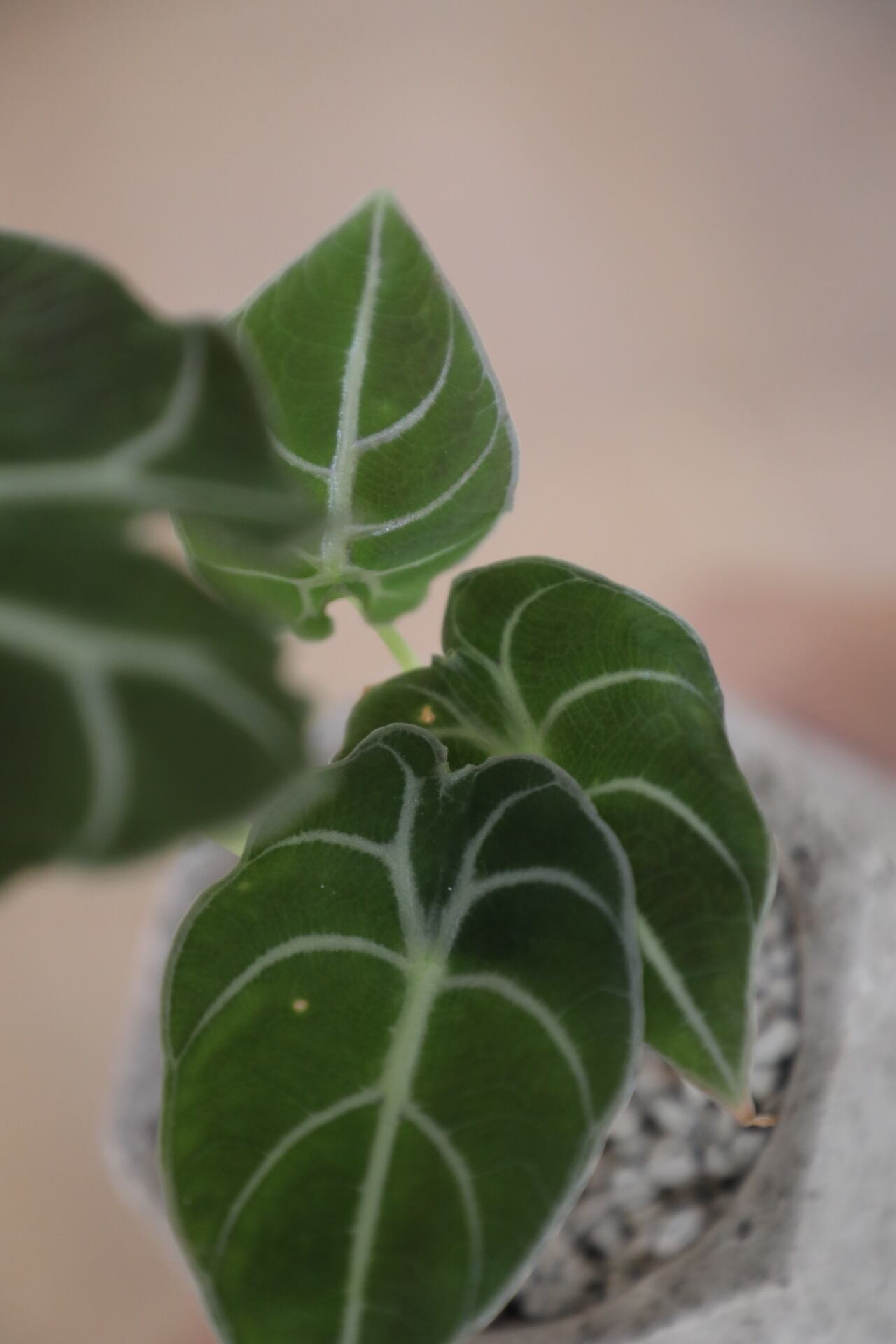光が当たると輝く魅惑の葉は、ベルベット質感でついつい触れたくなってしまいます。アロカシアならではのゆらゆら感と輝きに癒されてください。