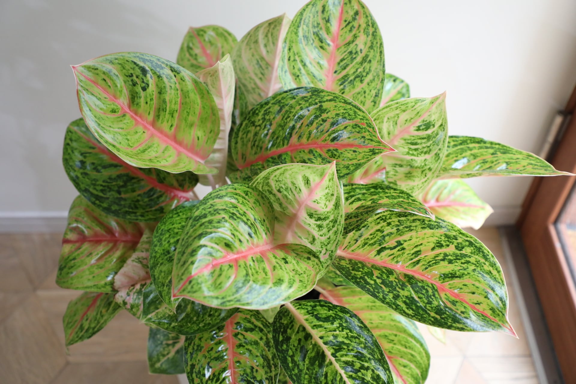 お部屋を明るくするピンク、ライトグリーンとホワイトのコントラストは美しく神々しいです。アグラオネマは空気清浄効果が高く、悪い気を浄化するパワーを持っており、金運や仕事運が上がるとも云われています。幸福を招く縁起物としてアジアで大人気です。