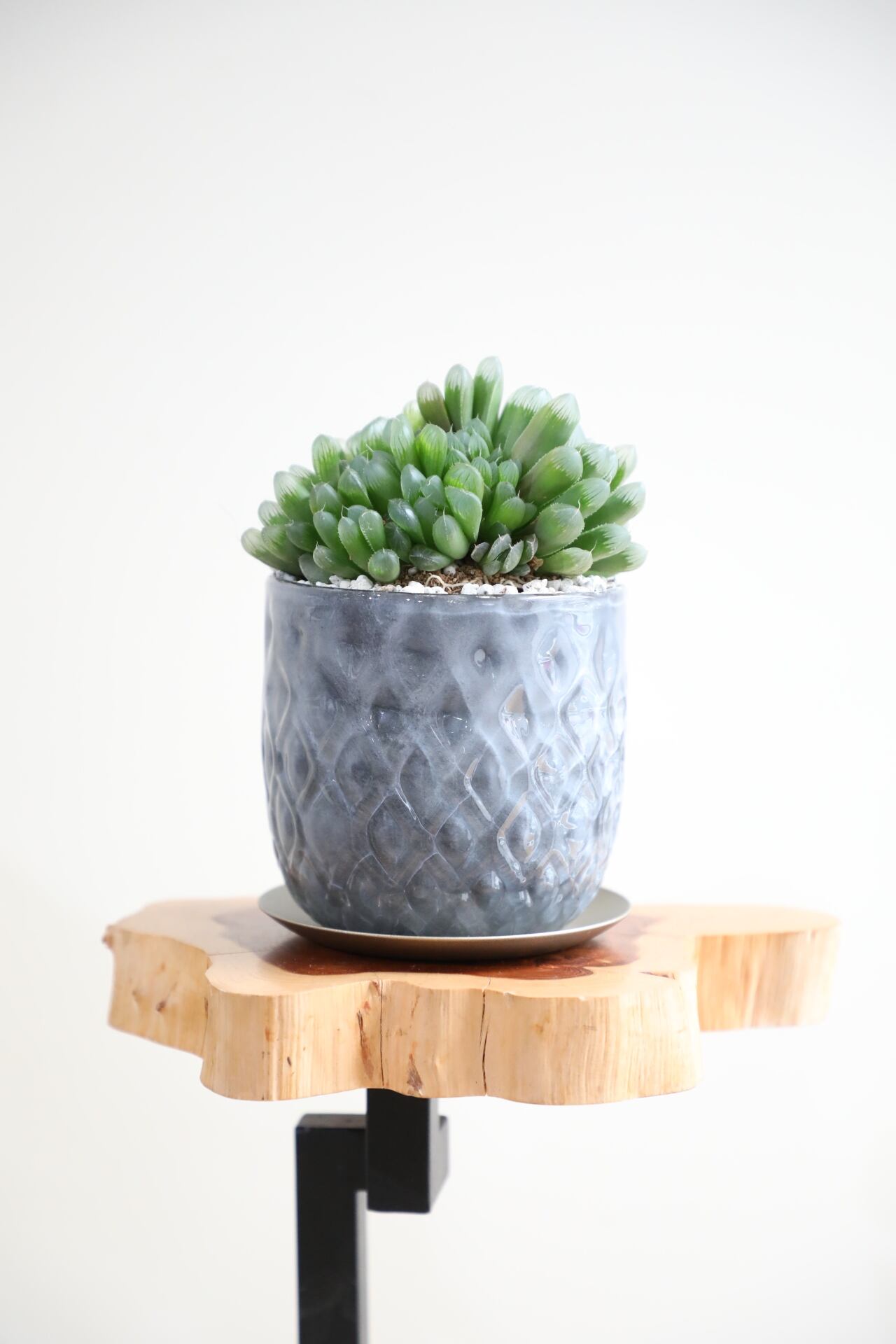 生きているとは思えないほど不思議な樹形、輝きに魅了されます。クリスタルプランツと呼ばれるハオルチアの中でも一際プリッと感のあるクーペリーの立派な株です。