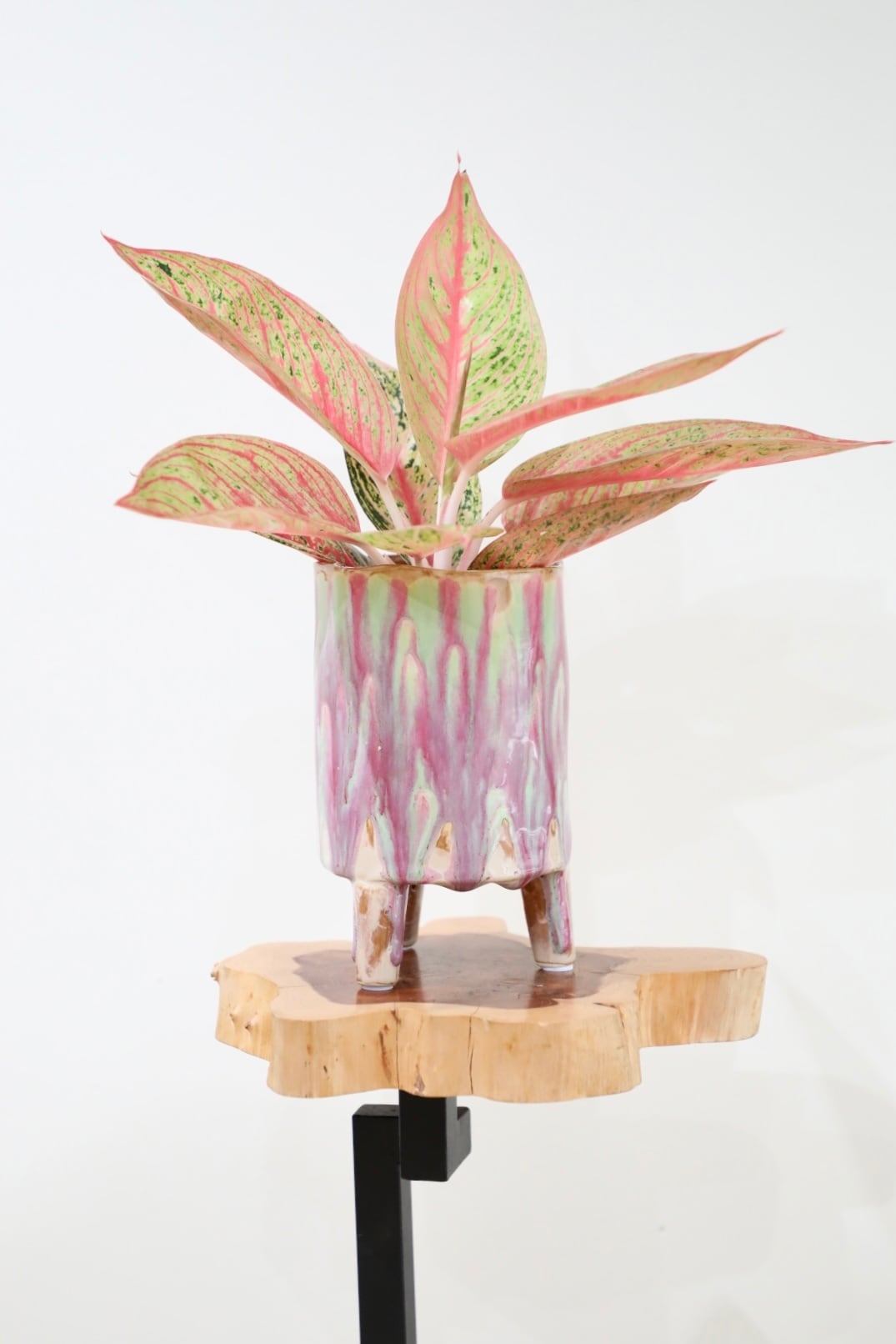 淡いピンクとビビットなピンクが絶妙に混ざり合う葉模様に惹き込まれます。滅多にお目にかかれないアグラオネマのピンク種です。