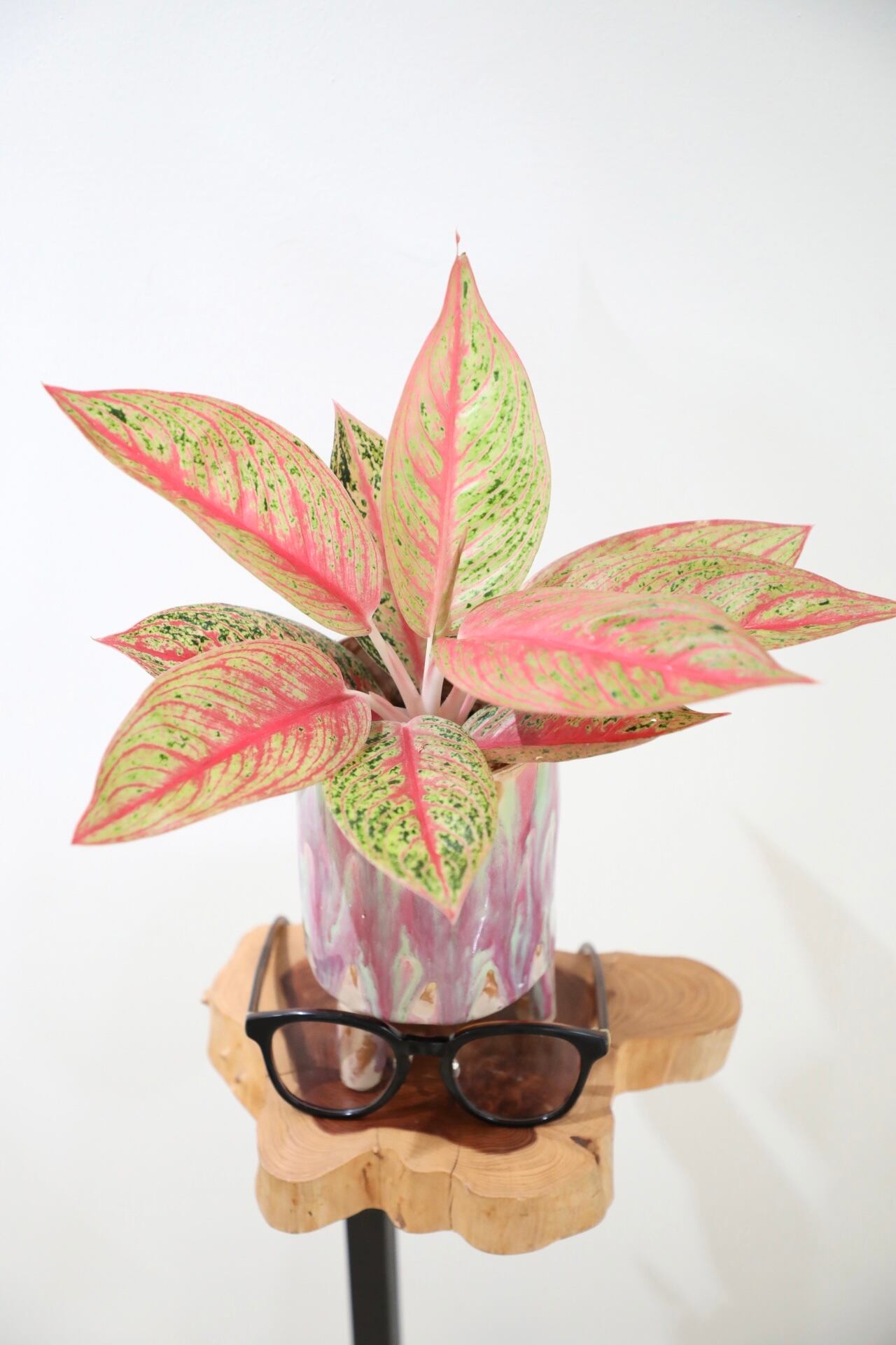 【希少】【S】アグラオネマ ピンクロイ ※【土不使用】陶器鉢付き