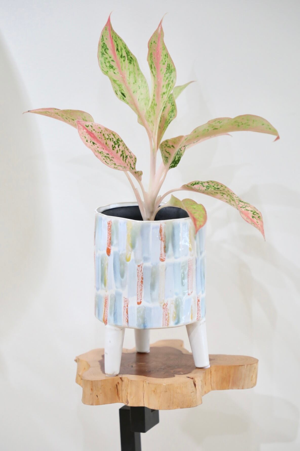 淡いピンクとビビットなピンクが絶妙に混ざり合う葉模様に惹き込まれます。滅多にお目にかかれないアグラオネマのピンク種です。