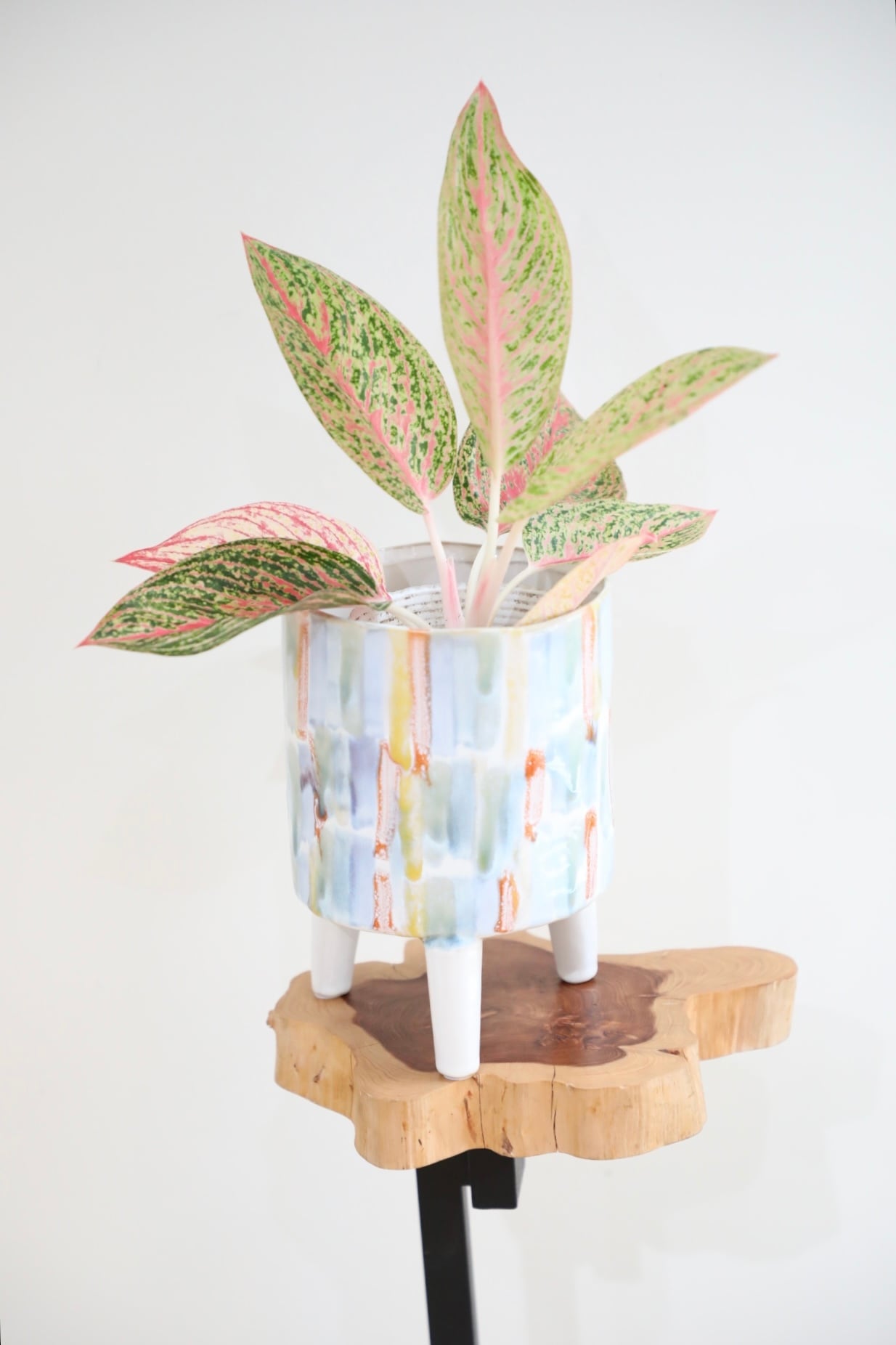 【M】【希少】アグラオネマ ピンクレガシー ※【土不使用】陶器鉢カバー付き