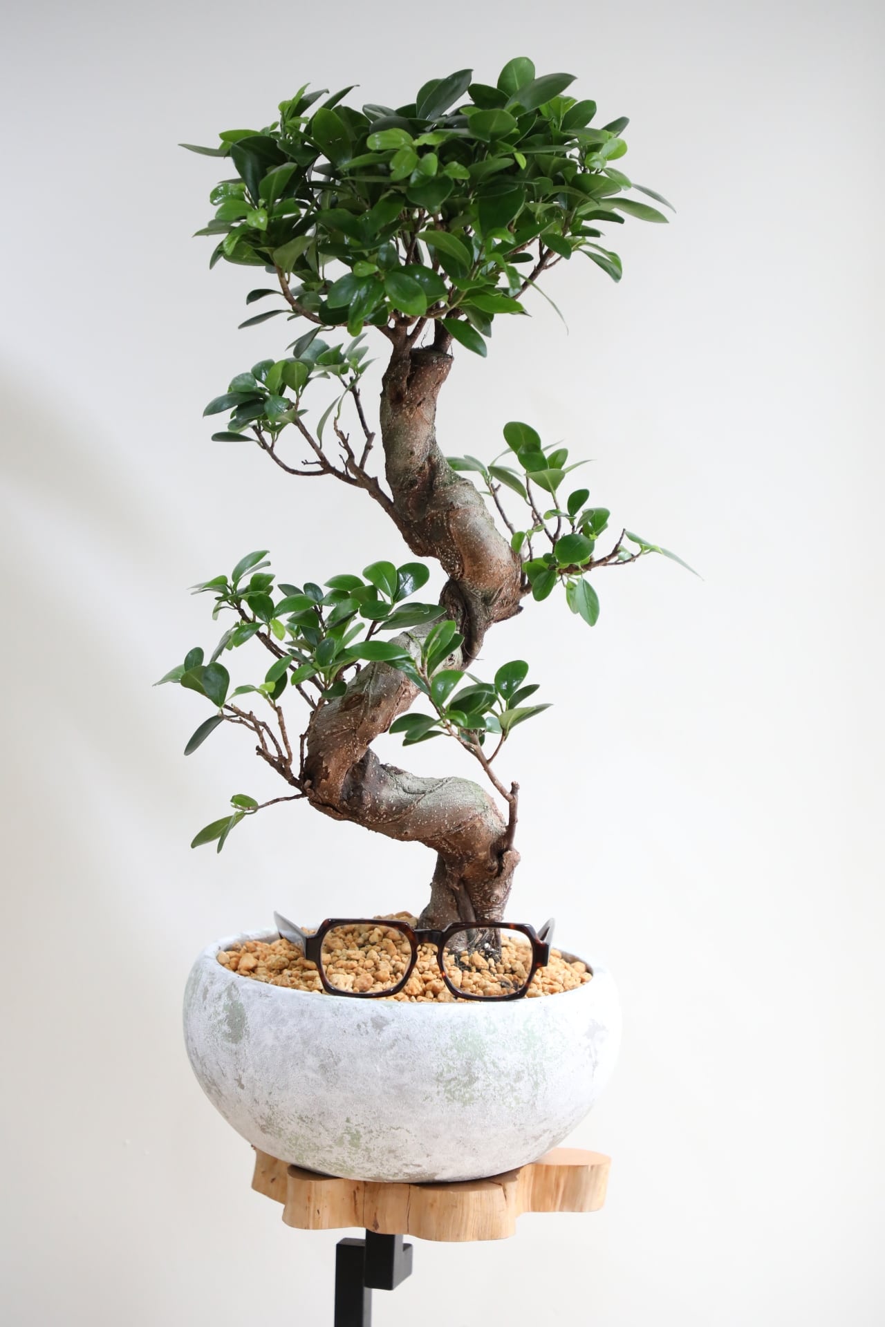 【M】ガジュマル 曲げ木/Ficus microcarpa ※陶器鉢付き