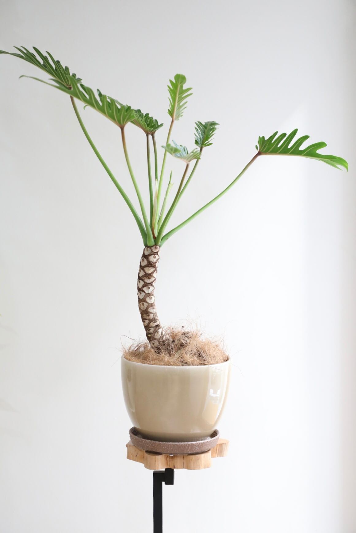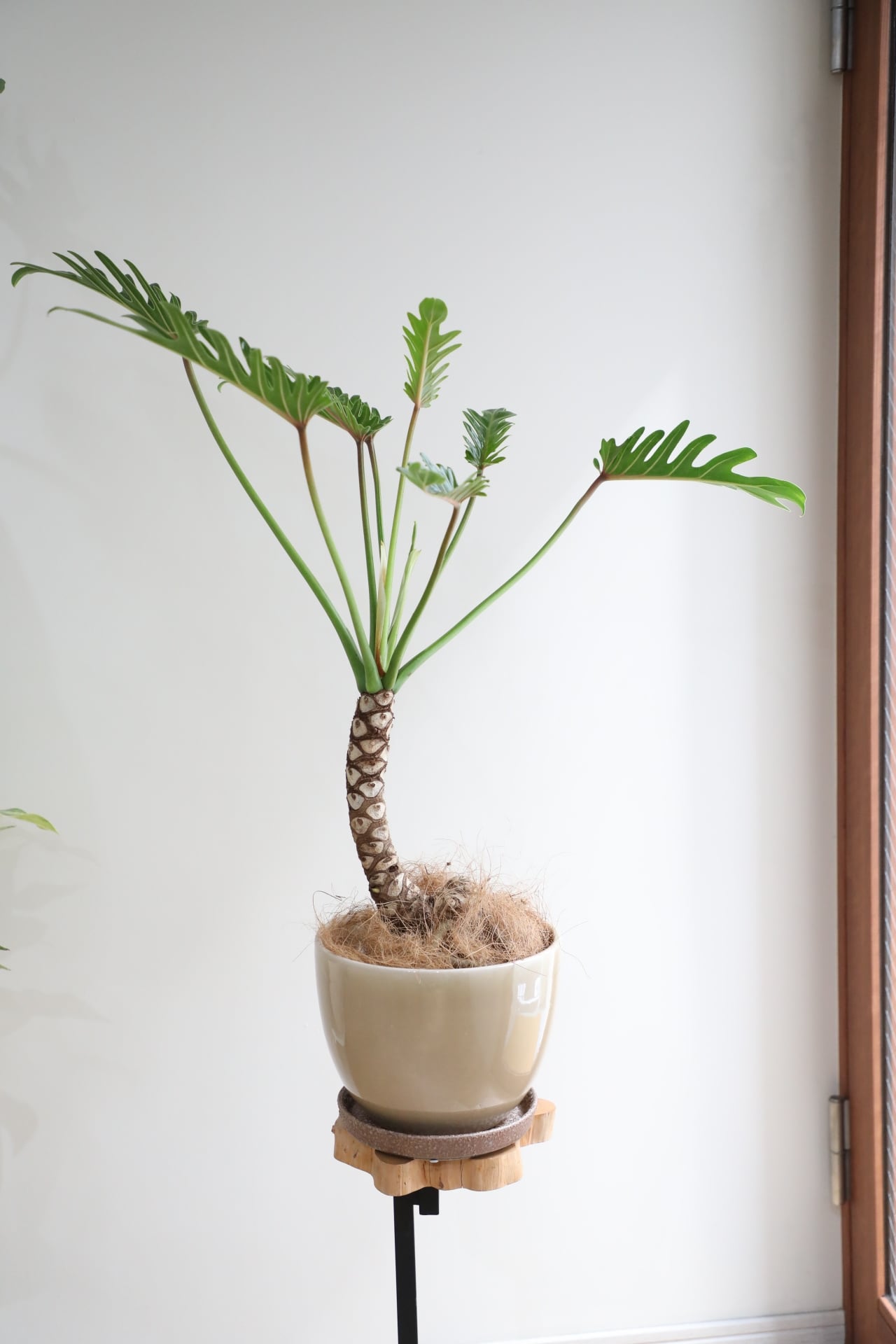 躍動感あふれる葉の生え方はワイルドかつキュート。根上り仕立てでより美しいフォルムに魅了されてしまう逸品です。葉が大きくなるにつれ、切れ込みが深く入ってくるのも楽しいです。