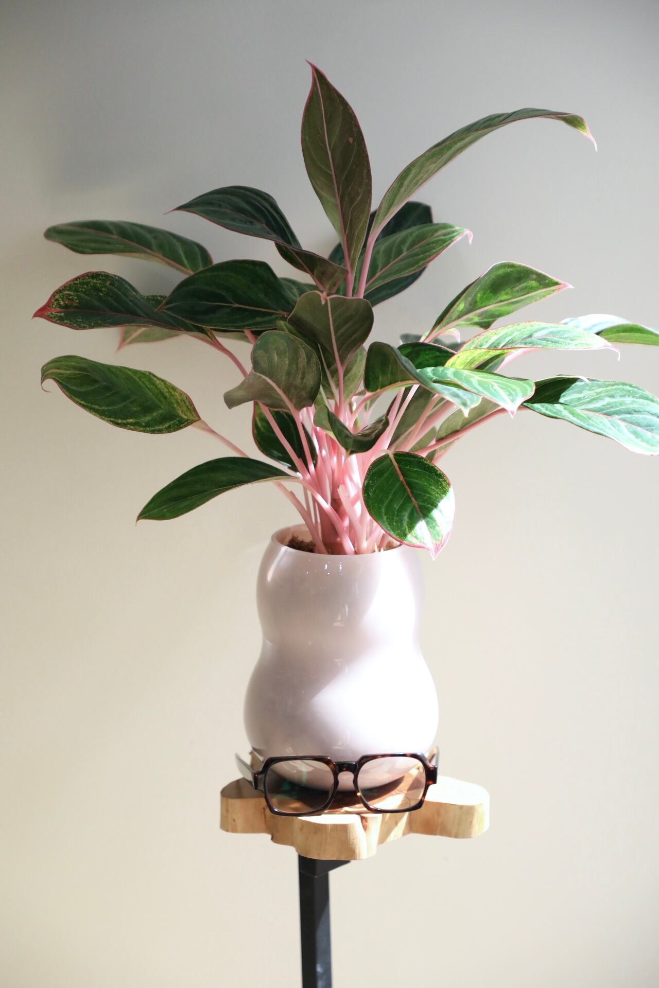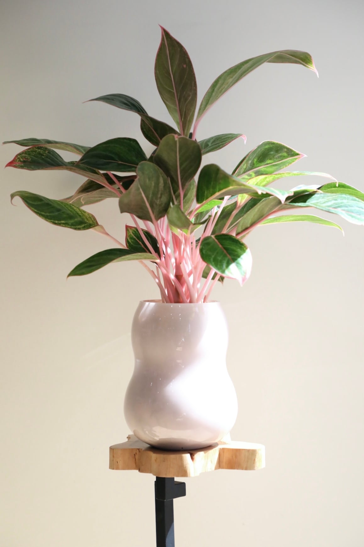 アグラオネマの中でもピンクの茎が一際華やかな品種。しっかりとしたボリューム感と、ランダムに混ざり合うピンクやグリーンのコントラストはとても爽やかです。邪気を払い幸運を招く植物ともいわれており、金運や仕事運が上がるとも言われています。