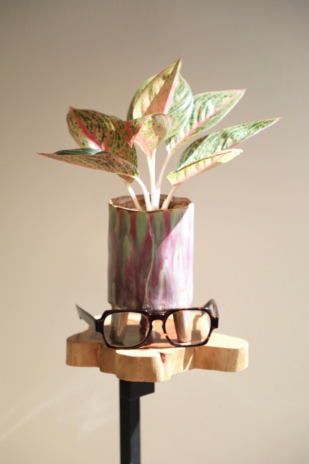 【M】【希少】アグラオネマ ピンクレガシー ※【土不使用】陶器鉢カバー付き
