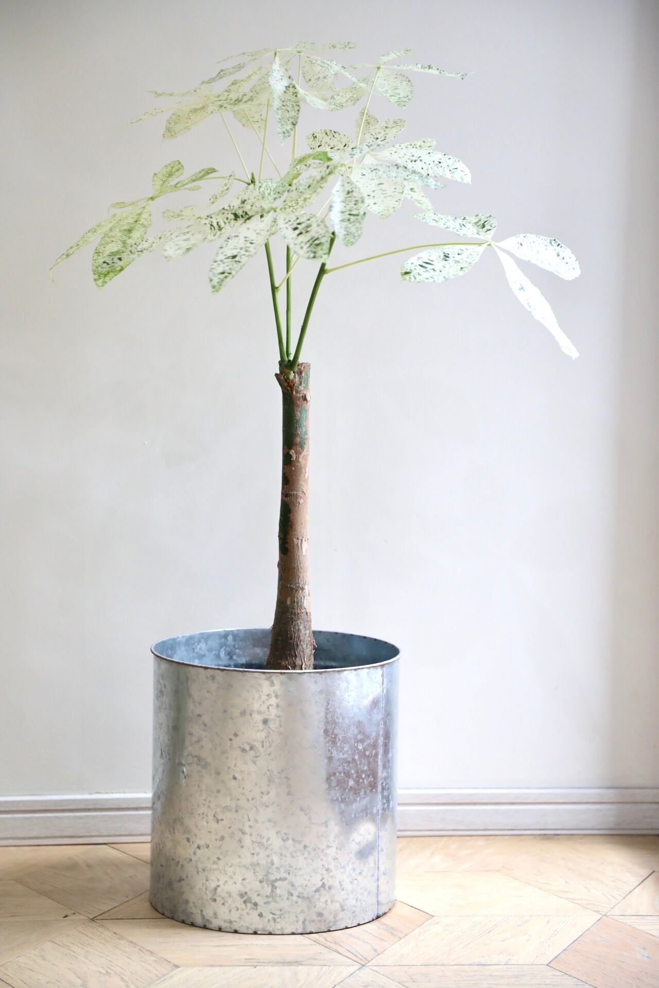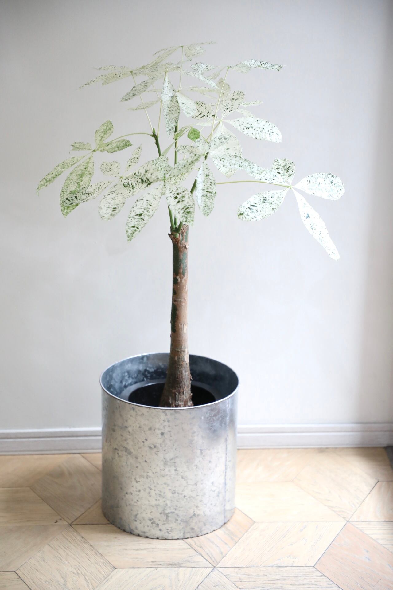 悪い気を吸収したり、金運アップの木と呼ばれたりと、風水的にもとても人気の高いパキラの美しい斑入り品種です。一枚一枚表情の違う葉模様は芸術的。お部屋を彩る一品です。幹二本仕立ての美しい曲線にうっとりします。