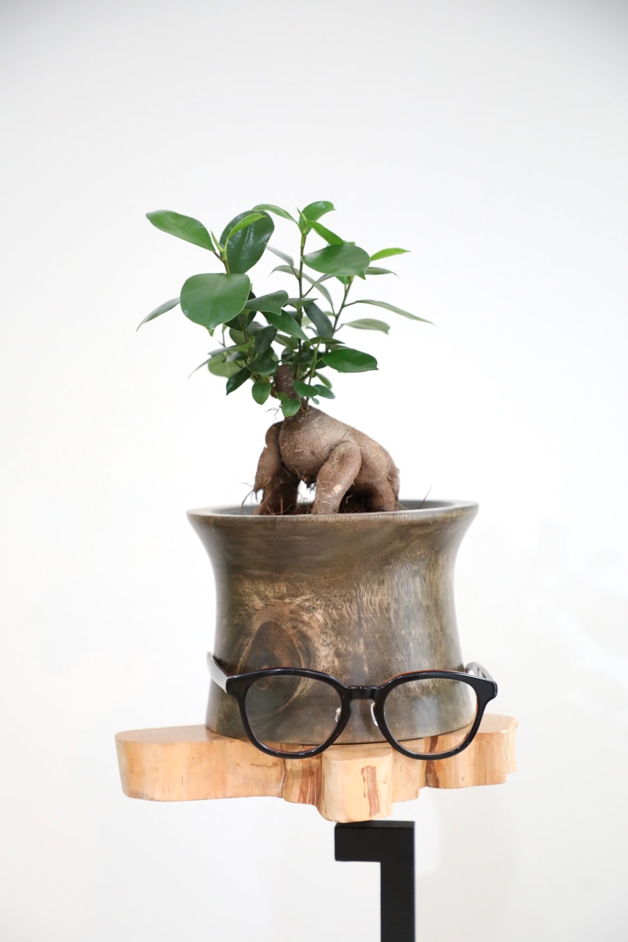 ※写真は実物です。マンゴーウッド鉢カバー付きの商品です。