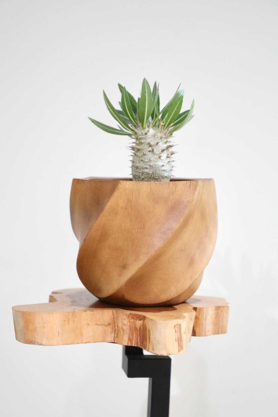 ※写真は実物です。マンゴーウッド鉢カバー付きの商品です。