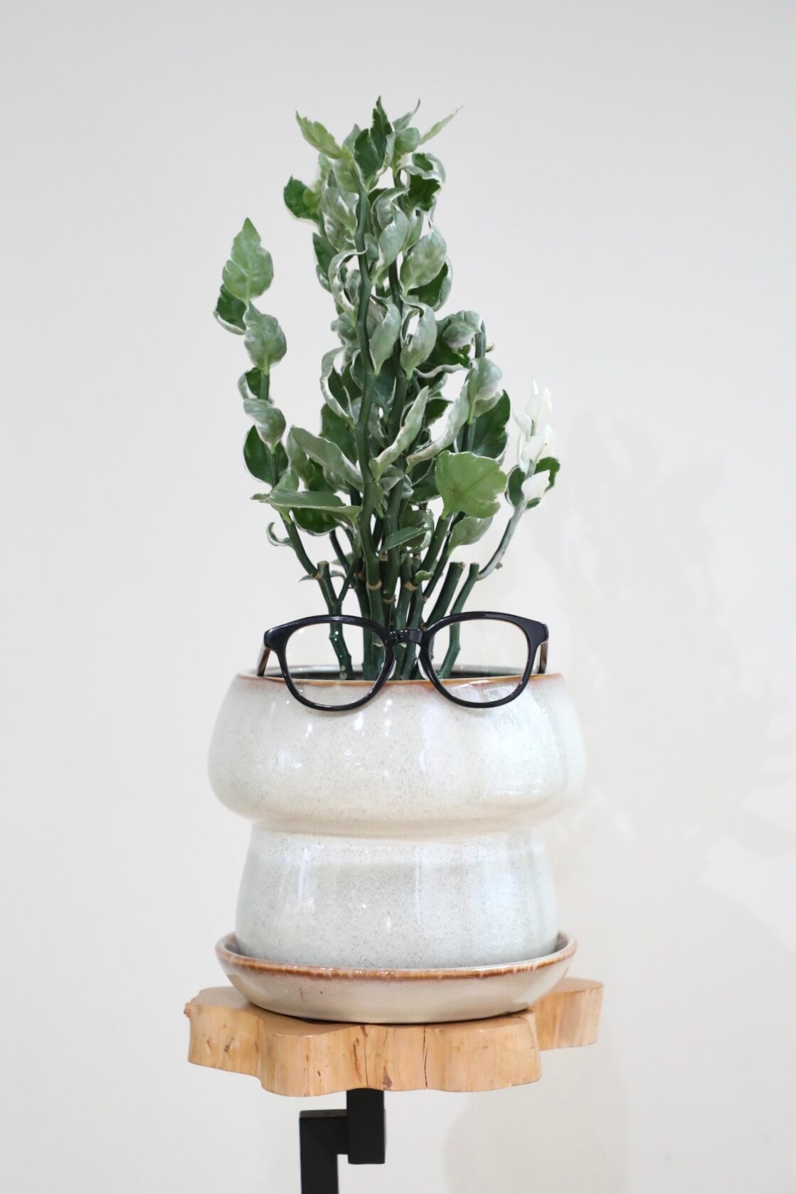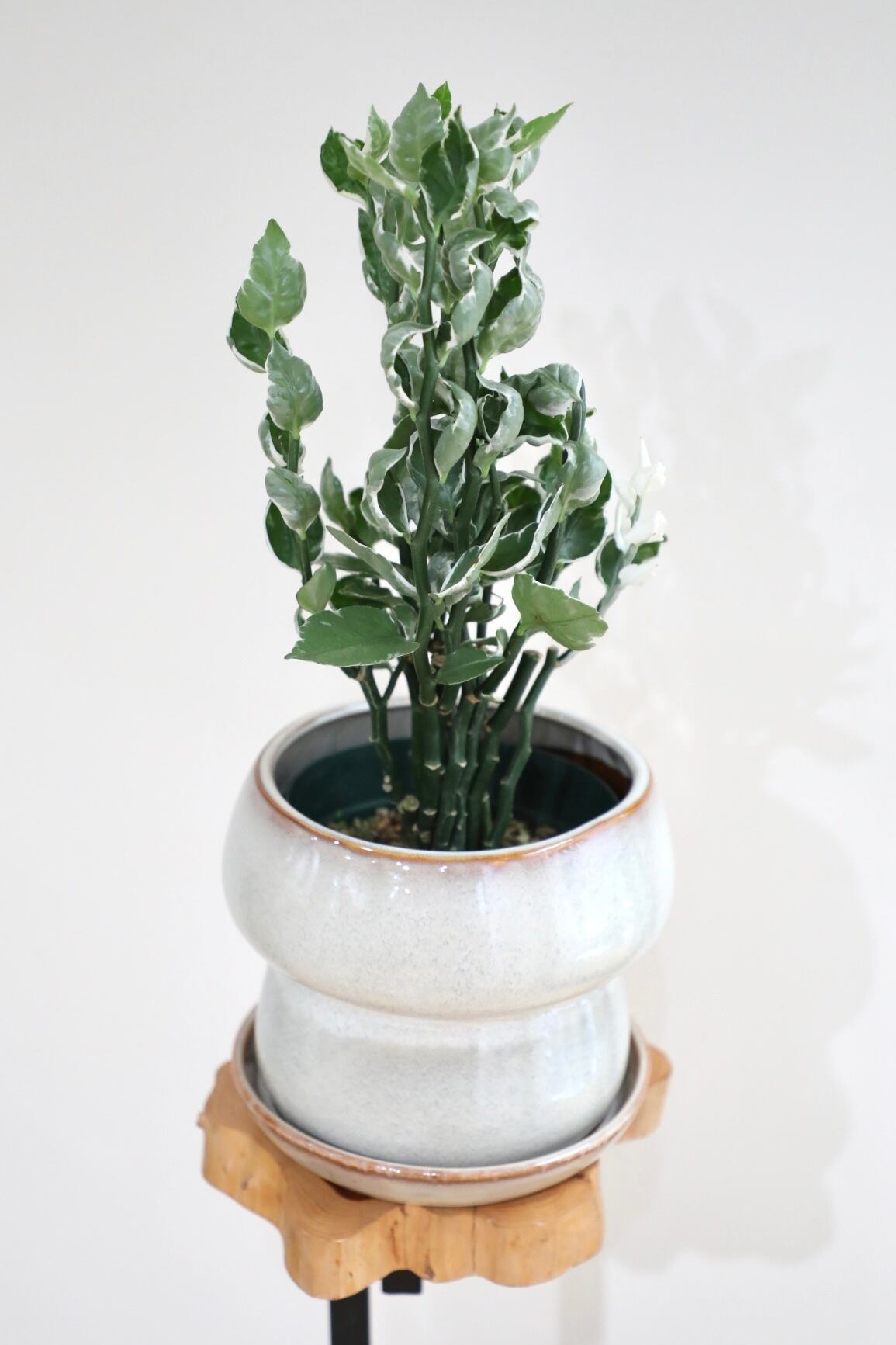 ジグザグと龍のごとく伸びてゆく茎の美しさだけでなく、緑の葉に滲み出る銀と白の模様が美しいですです。躍動感あふれる姿にパワーをもらえます。