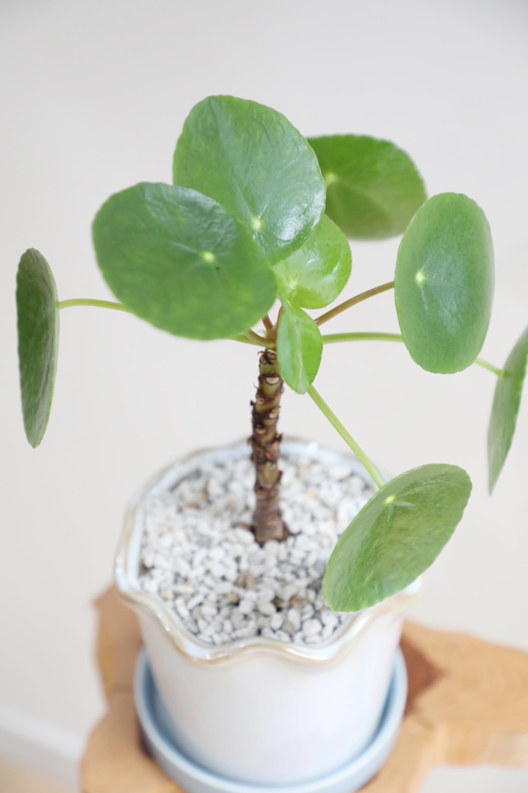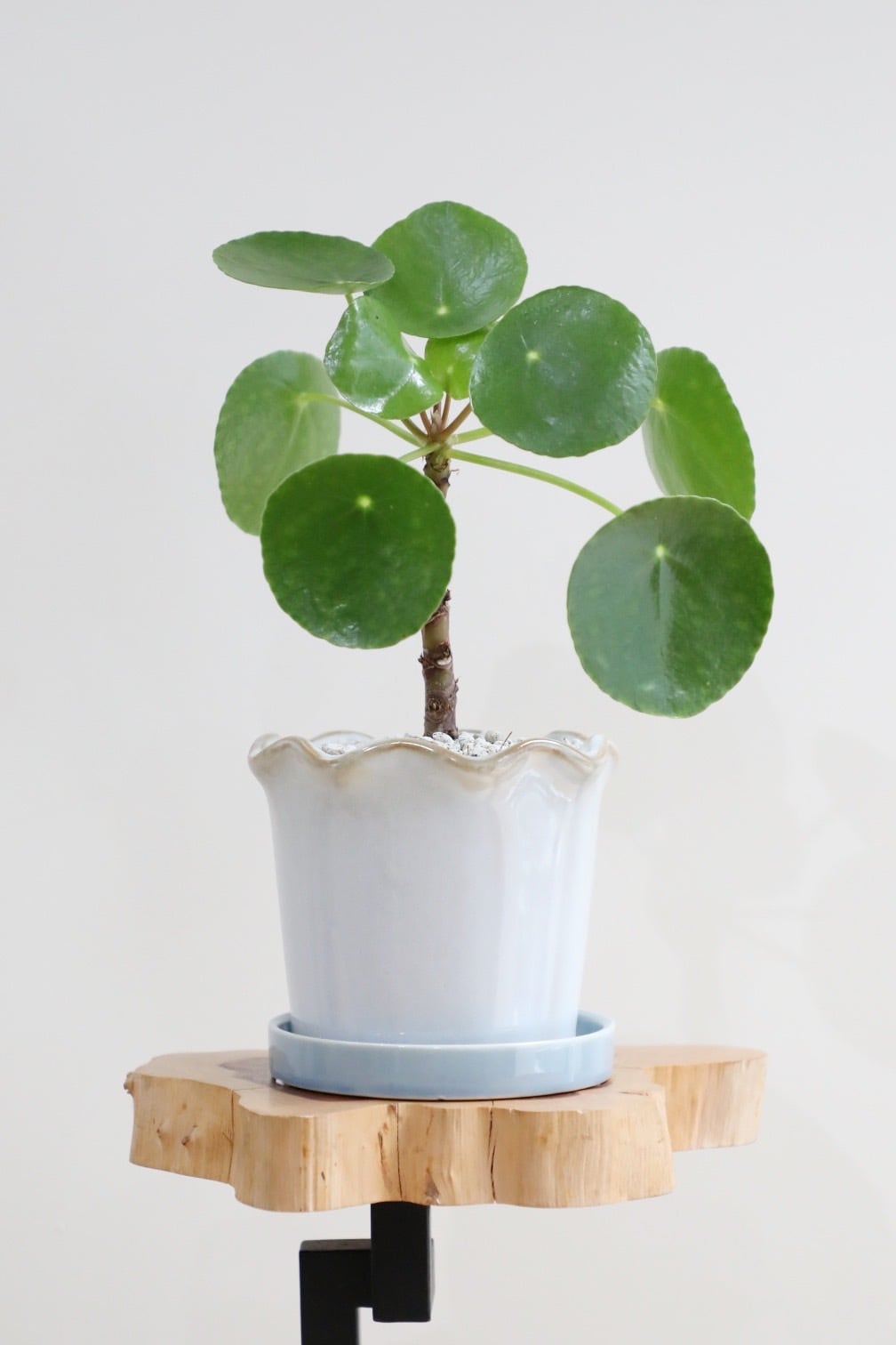 肉厚で光沢のある葉は可愛らしく、四方八方に伸びる丸い葉はアート感たっぷり。次はどの方向に新芽が伸びていくだろう?とお楽しみいただけます。