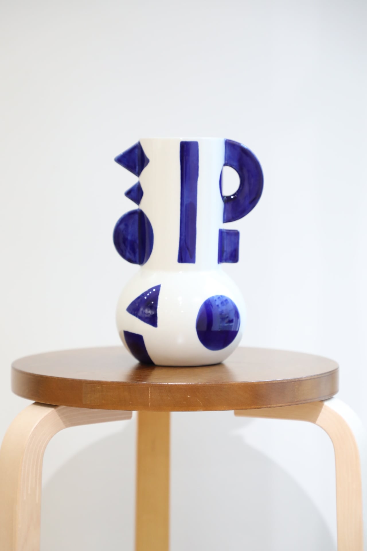 深いコバルトブルーが白磁に映え、まるで抽象芸術の彫刻作品のような佇まいです。