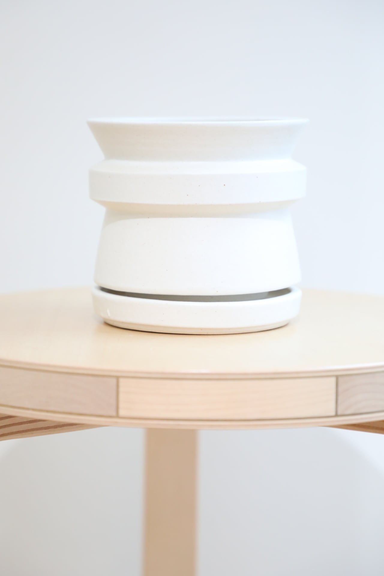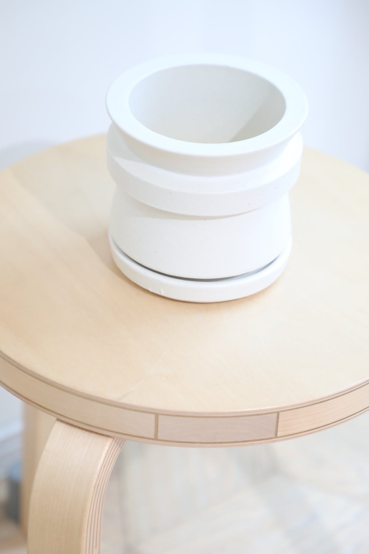 シンプルでありながら計算された美しいフォルム、マットな質感のホワイトはインテリアに合わせやすいです。滋賀県で古くから伝わる信楽焼で製作された一品。