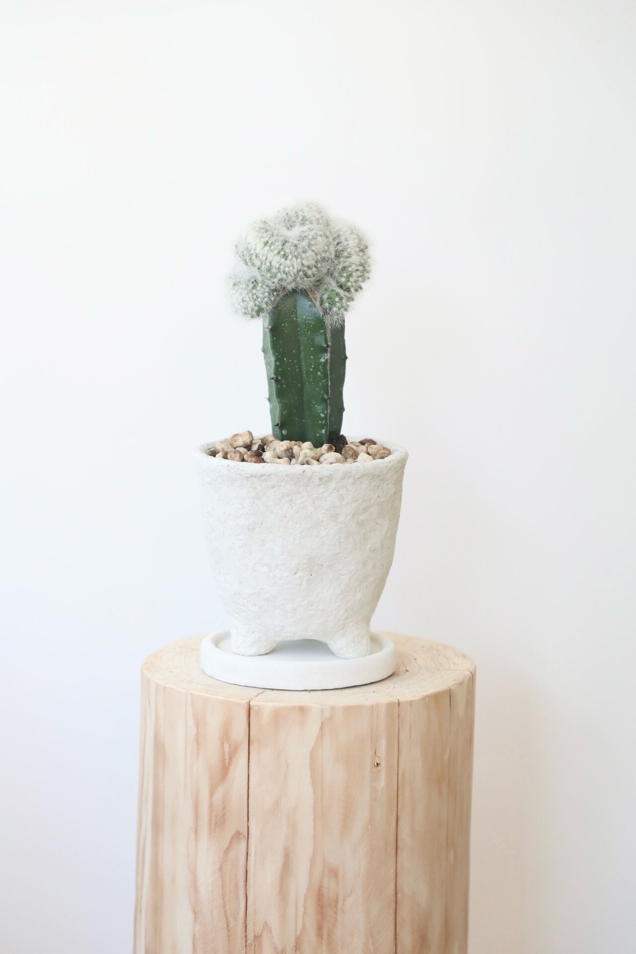 白い毛で覆われた姿とピンクの花が幻想的なマミラミア属の綴化種(遺伝子の突然変異によって形成された希少価値の高いフォルム)です。