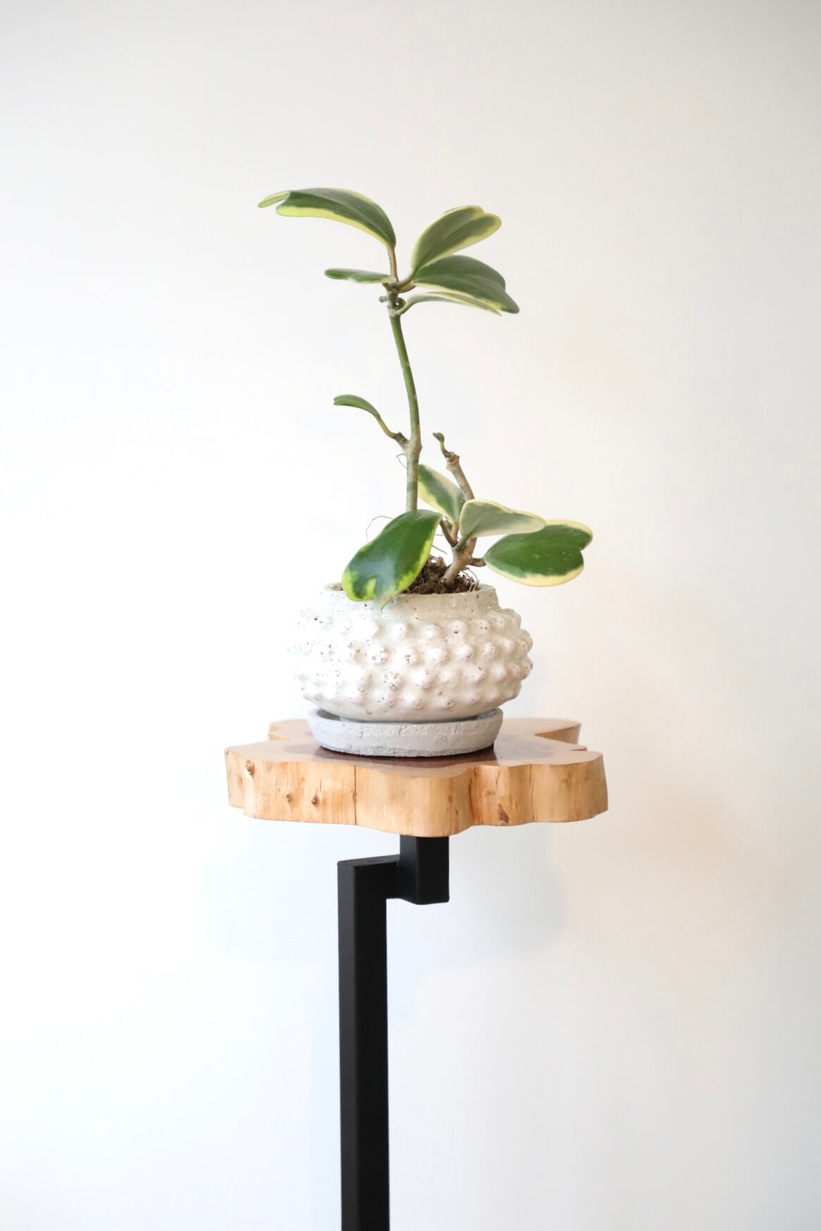 ホヤの中でもふっくらとした葉が可愛らしいケリーの斑入り品種。ヘリコプターのような樹形にさらに愛おしさん追い打ちをかけられます。