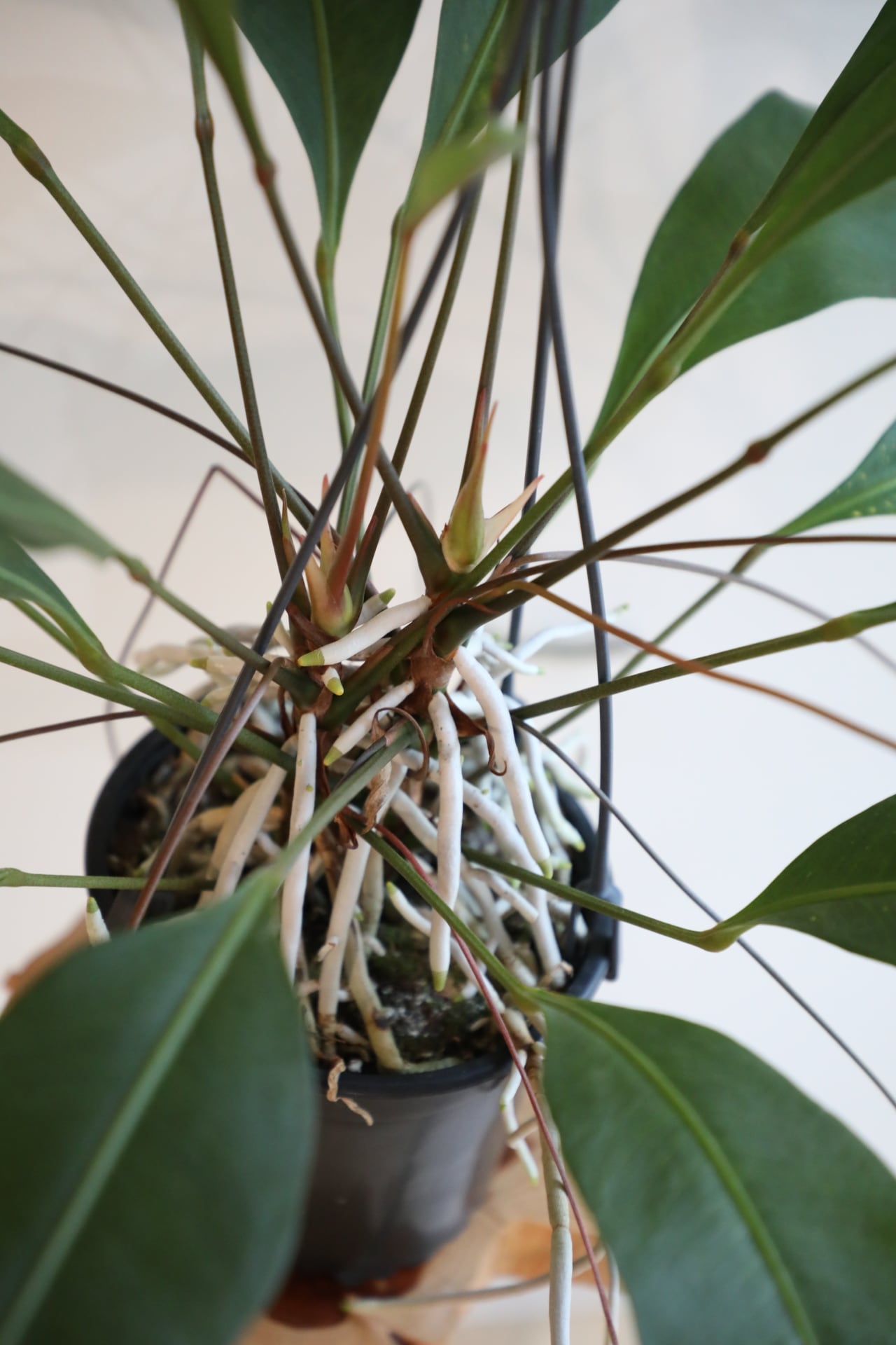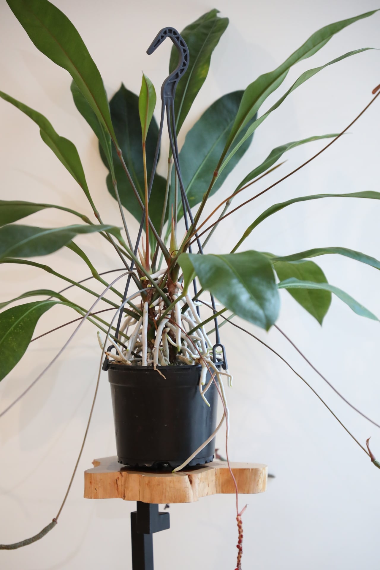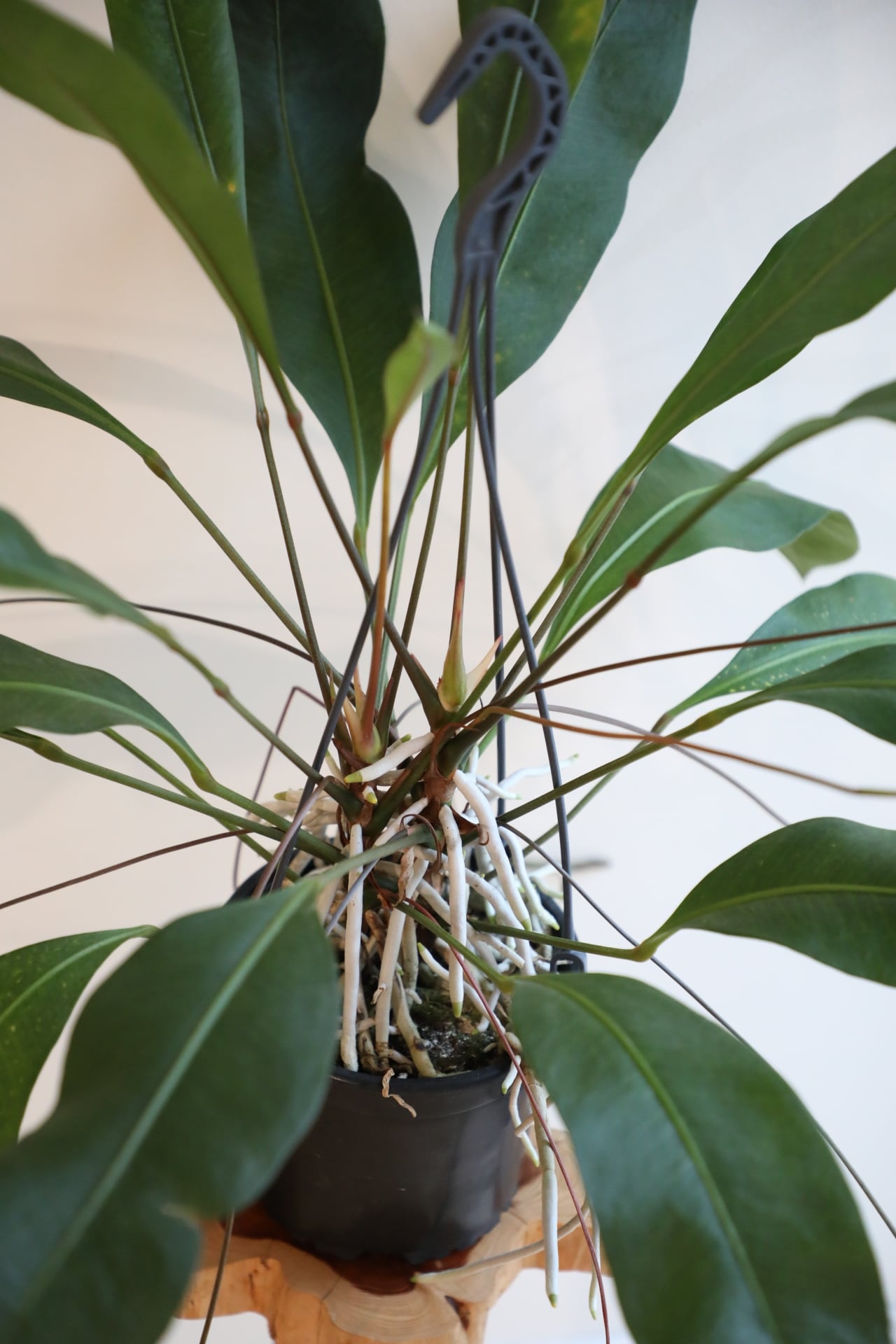波打つ葉と四方八方に伸びる気根がワイルドで、鑑賞性抜群です。力強くピンと伸びた葉を眺めているとパワーを貰えます。※写真は実物の商品です。